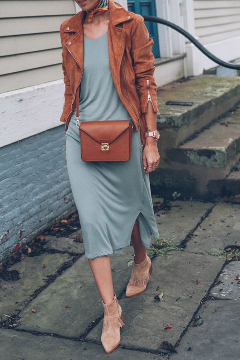 Váy liền với giày ankle boot